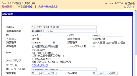 ショートステイ管理者専用の管理画面での、施設情報の入力方法です。